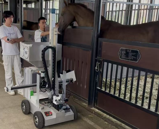 2025年10月24日,烏魯木齊達坂城區白楊溝村,牧民朱瑪哈力正在配合新疆野馬文化發(fā)展有限公司馬(野馬公司)育種技術人員,對馬匹進行孕檢。 得益于自治區現代畜禽種業提升專項資金的支持,在烏魯木齊市農業農村局、高新區農業農村局的指導下,2025年,野馬文化公司利用優(yōu)質馬種質資源和細管凍精技術,為烏魯木齊周邊農牧民免費開展馬品種改良和繁育工作,朱瑪哈力就是受益者之一。早在2024年,野